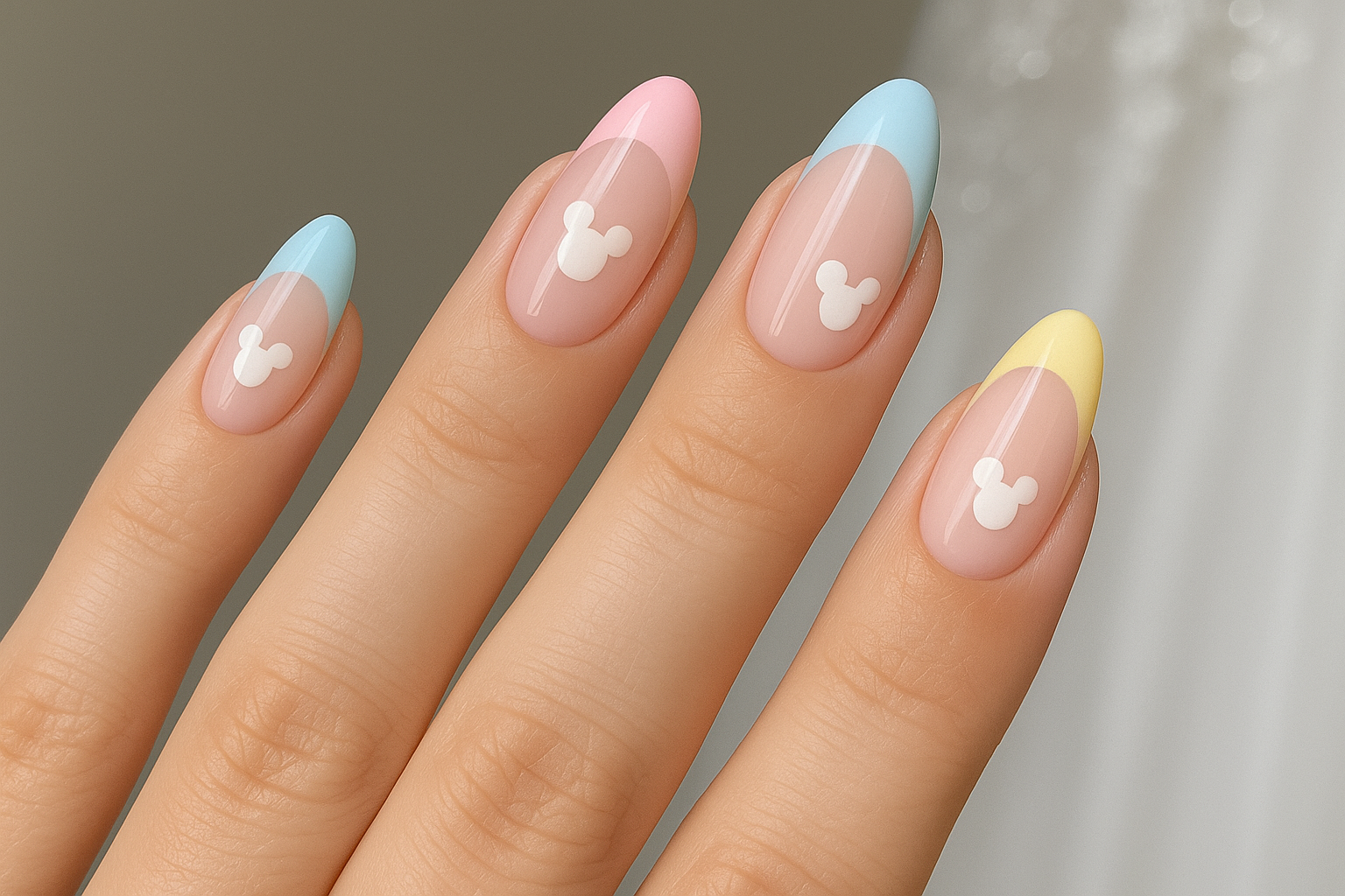 When you think of Disney, the iconic castles often come to mind. This image of nails captures that fairytale essence perfectly. The soft ombre pink and orange colors evoke a dreamy sunset, reminiscent of those magical evenings spent in front of a Disney castle.